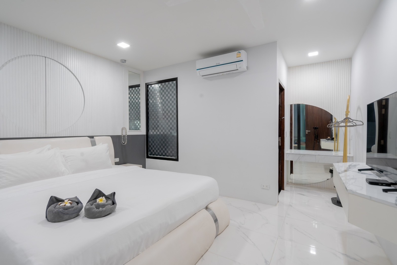 6 fully furnished bedrooms with air-conditioning, flat-screen TVs, and cable