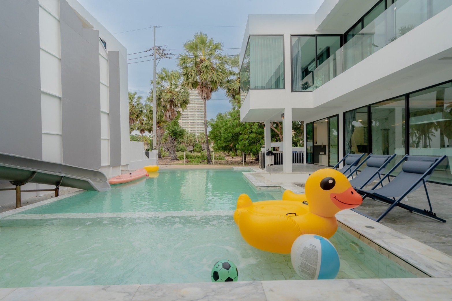 This private pool villa is ideal for families, groups of friends, and pet lovers looking to relax in comfort just 30 meters from the beach. With spacious rooms and modern amenities, your stay promises both fun and relaxation.
