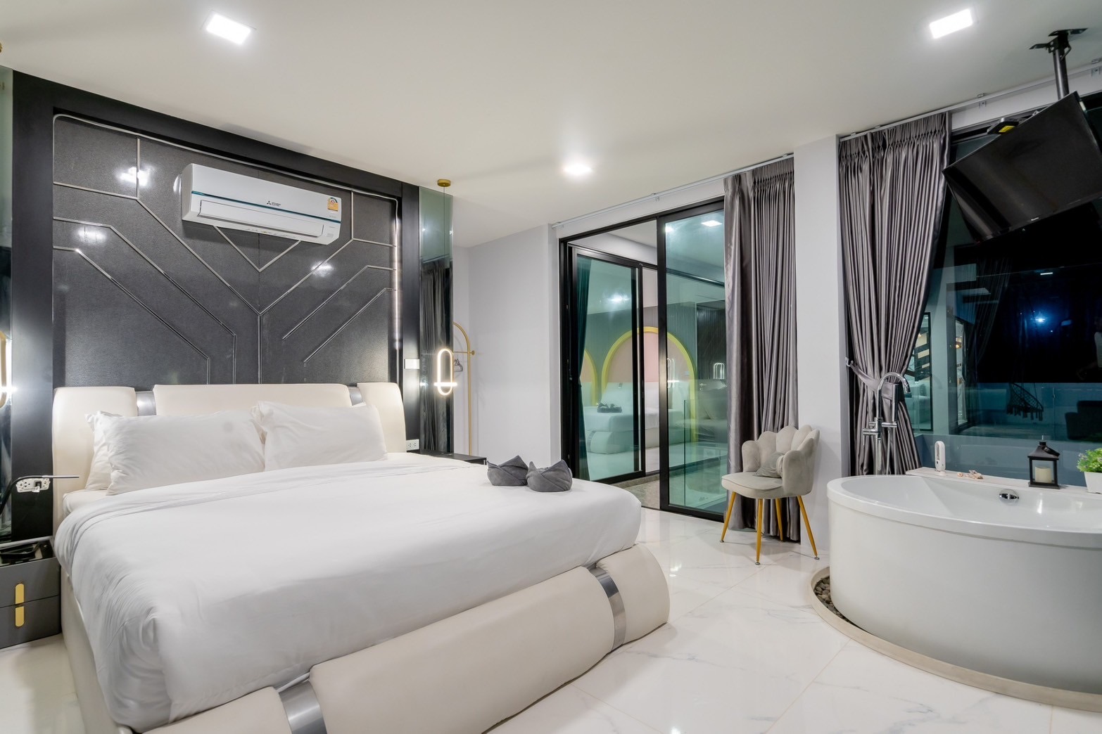 2 king-size beds and 1 bunk bed (sleeps up to 7) + Sea-view bathtub in the bathroom