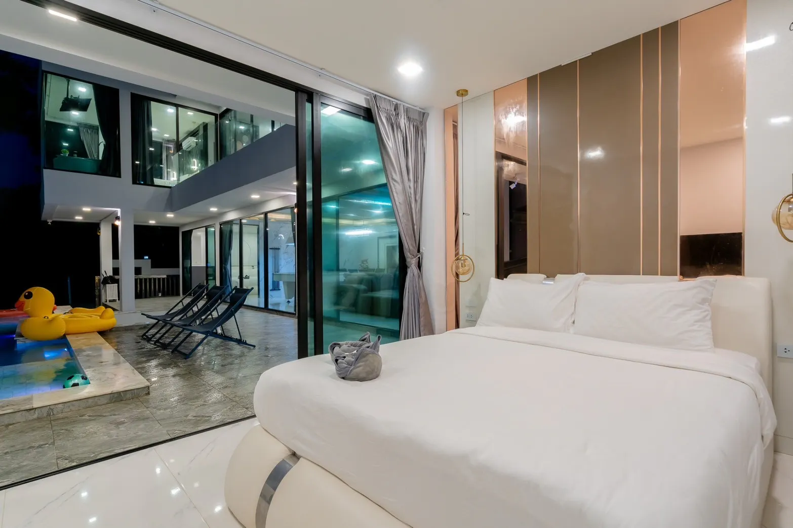 Pool side with 1 queen-size bed and 1 single bed (for 3 people)